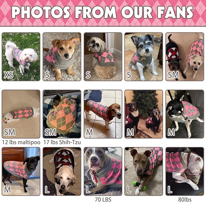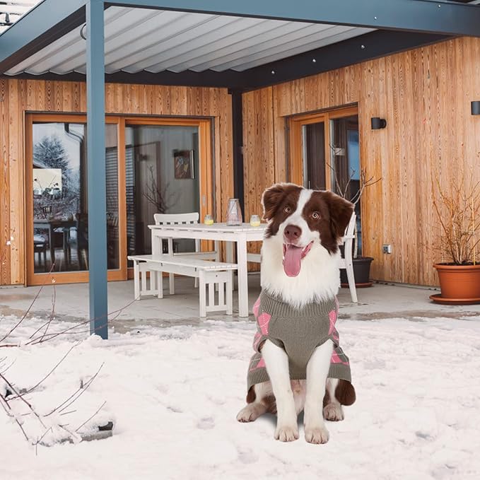 PAWCHIE Classic Dog Sweater Knit Turtleneck, Plaid Knitwear Sweaters, Warm Clothes for Medium Dogs