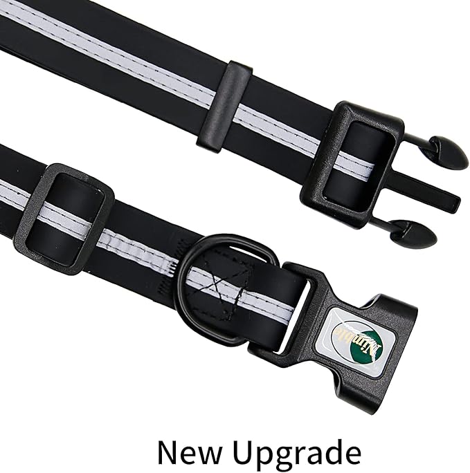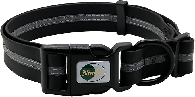 NIMBLE Dog Collar Waterproof Pet Collars Anti-Odor Durable Adjustable PVC & Polyester Soft with Reflective Cloth Stripe Basic Dog Collars S/M/L Sizes (Large (15.35”-24.8”inches), Black)