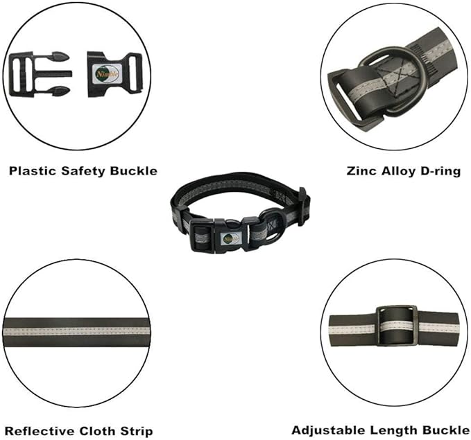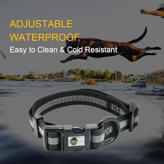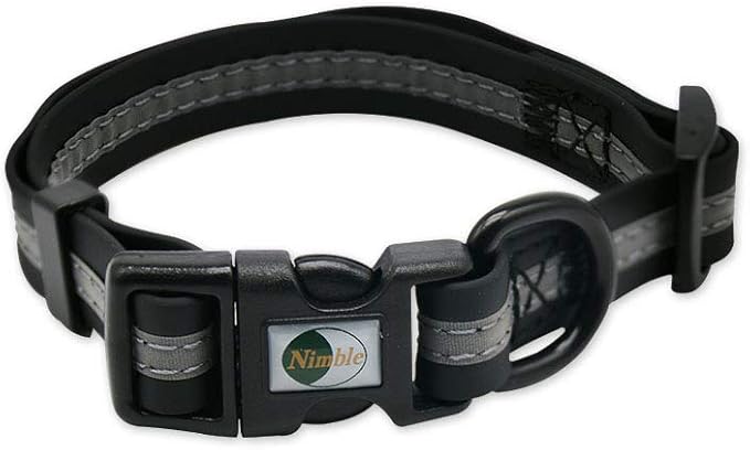 NIMBLE Dog Collar Waterproof Pet Collars Anti-Odor Durable Adjustable PVC & Polyester Soft with Reflective Cloth Stripe Basic Dog Collars S/M/L Sizes (Small (9.45”-14.17”inches), Black)