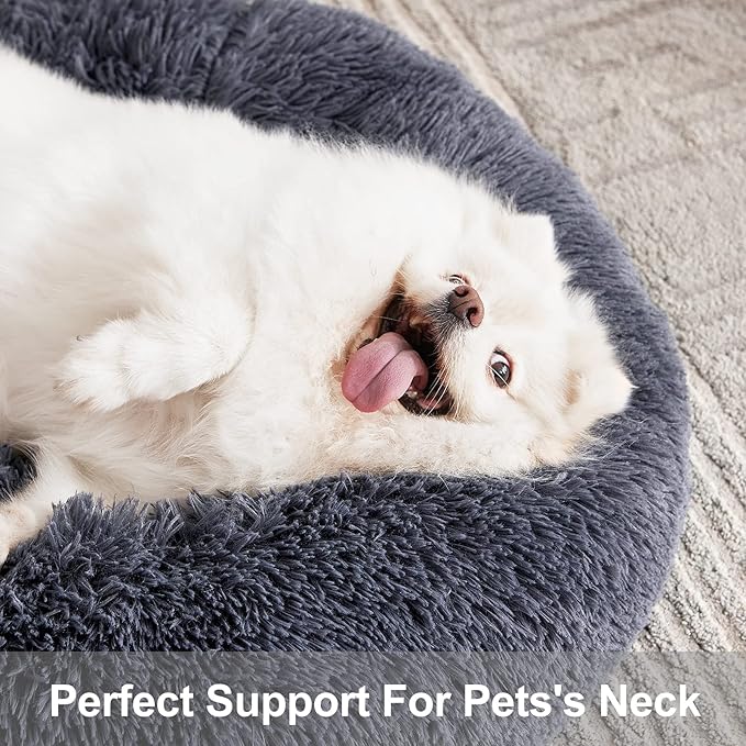 - ★ Super Comfort & High quality: with faux shag fur, the round bed is ultra soft, warm and comfortable for your lovely friends. Urable nylon and luxurious faux fur come together help your pets restful sleep for improved behavior and better health.