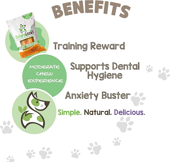 Nature Gnaws Beef Paddywack Tendons for Dogs 5-6" (10 Count) - Long Lasting for Aggressive Chewers - Natural Beef Dog Chew Bones - Rawhide Free