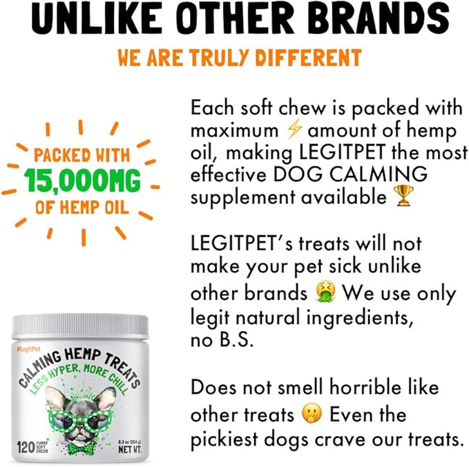 - You don't need a calming collar for dogs or calming spray for dogs! LEGITPET dog hemp chewables are much better, packed with organic chamomile, hemp plus valerian root — it's simply the best rescue remedy for dogs