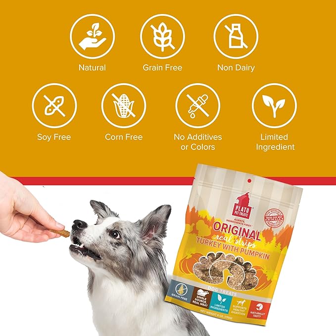 Plato Original Real Strips Turkey & Pumpkin Recipe 6oz, Natural (850002221411)
