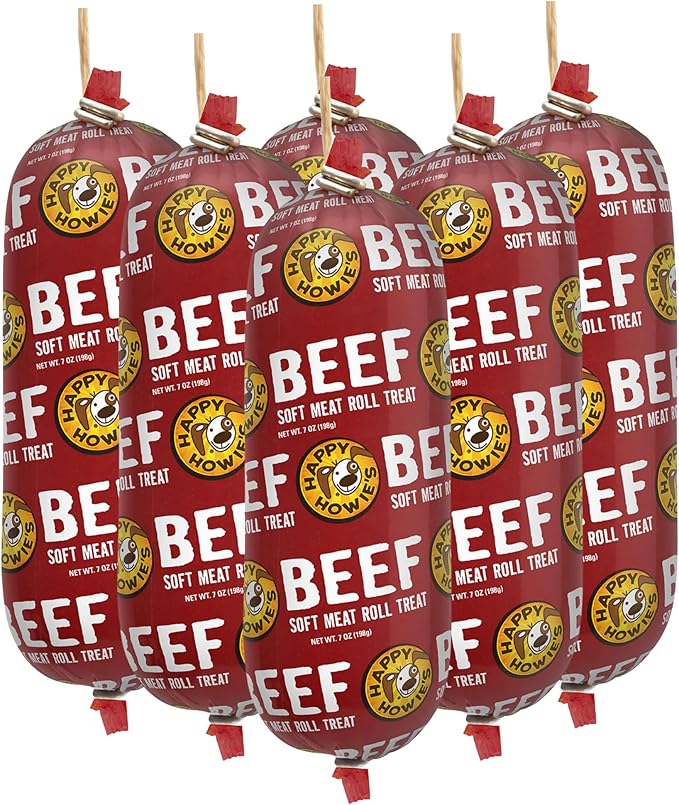 Happy Howie's Soft Meat Roll Treat - Soft Dog Food Beef Rolls, High Protein, Natural Ingredients, for All Dogs, Made in USA - Beef, 7 Oz (Pack of 6)