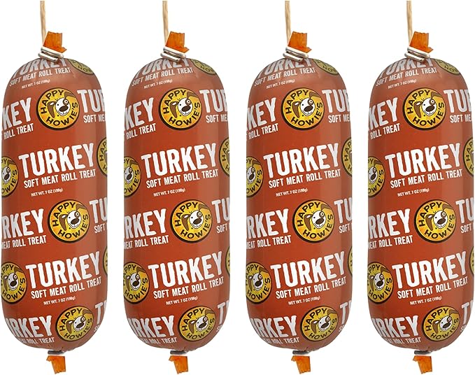 Happy Howie's Soft Meat Roll Treat - Soft Dog Food Rolls, High Protein, Natural Ingredients, for All Dogs, Made in USA - Turkey, 12 Oz (Pack of 4)