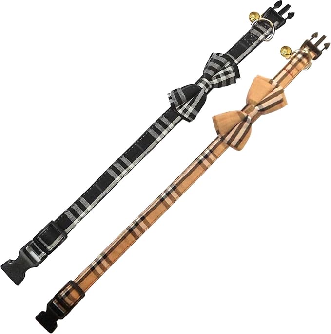 KUDES 2 Pack/Set Dog Collars with Bow Tie and Bells, Adjustable Cute Dog Bow Ties Collar for Small/Medium/Large Boys and Girls Pets (Black+Brown, S(9.6''-13.8''))