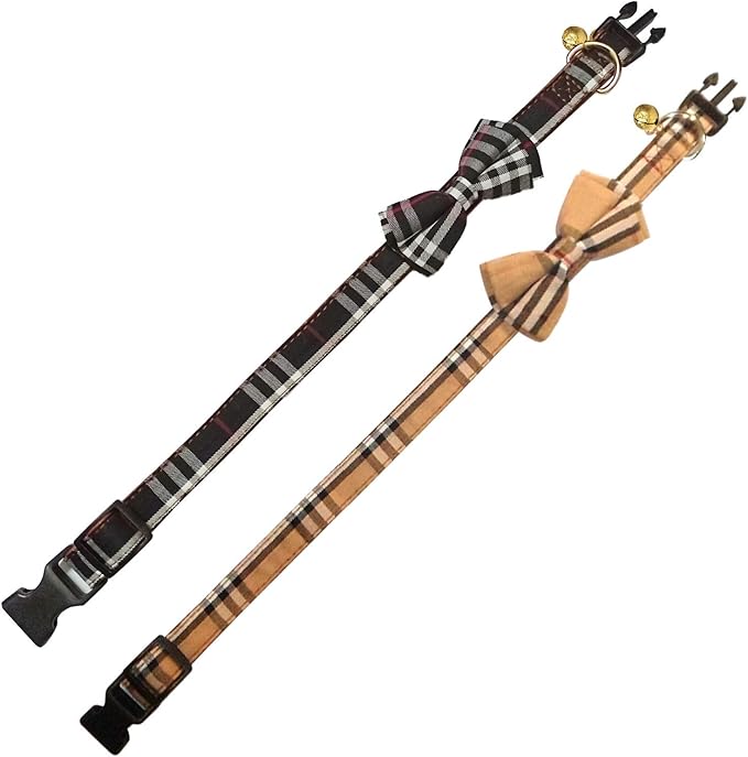 KUDES 2 Pack/Set Dog Collars with Bow Tie and Bells, Adjustable Cute Dog Bow Ties Collar for Small/Medium/Large Boys and Girls Pets (Black+Brown, L(14.2''-21.7''))