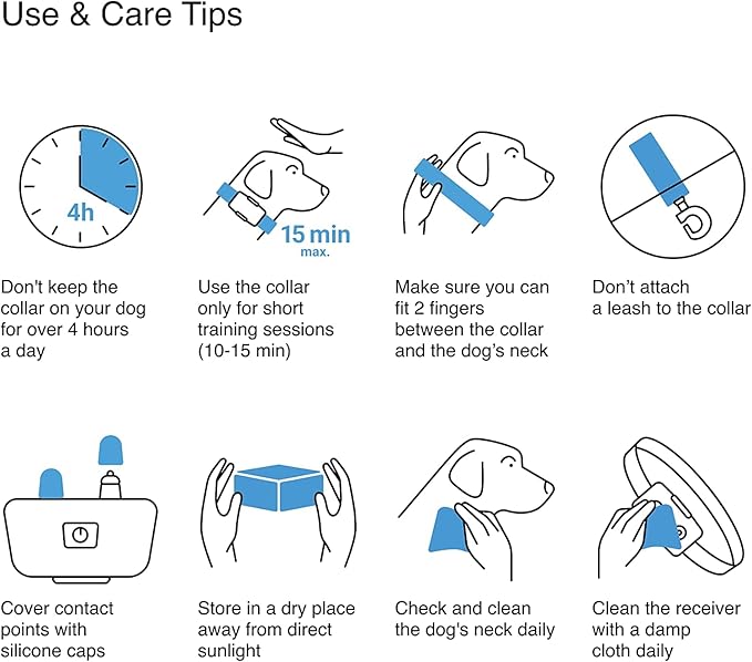 - 4 training modes: continuous shock, 1 sec shock, vibration, and a beep trainer with 8 adjustable levels