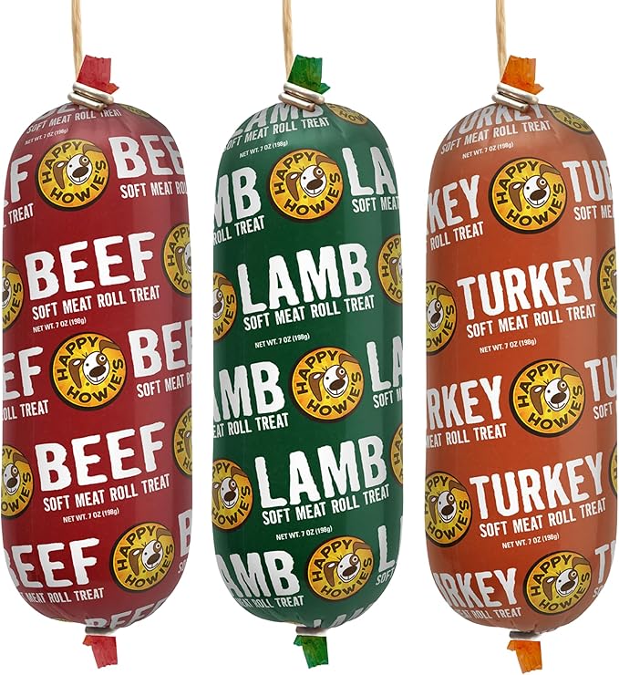 Happy Howie's Soft Meat Roll Treat - Soft Dog Food Rolls, Natural Ingredients, for All Dogs, Made in USA - Beef, Lamb, Turkey, 7 Oz (Pack of 3)