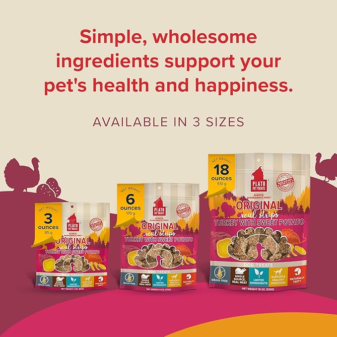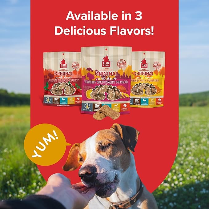 PLATO Original Real Strips Turkey & Sweet Potato Recipe 3oz, Natural
