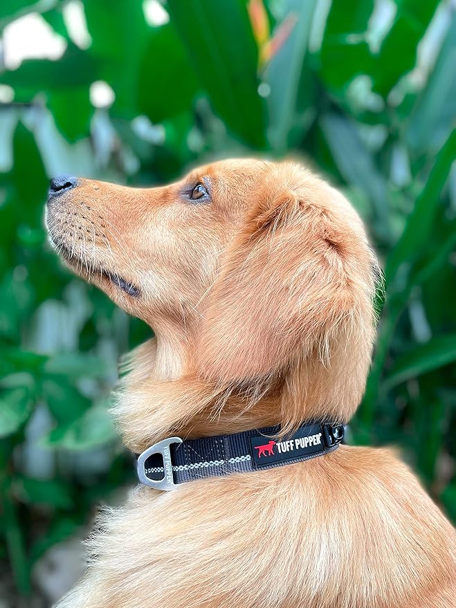 Tuff Pupper Heavy Duty Collar | Reflective with Aluminum D-Ring | Separate Dog ID Tag Attachment | Easy Sizing for All Breeds