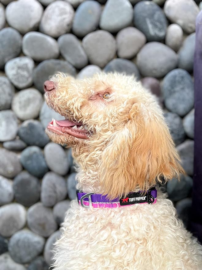 Tuff Pupper Heavy Duty Dog Collar | Reflective with Aluminum D-Ring Leash Clip | Separate Dog ID Tag Attachment | Easy Sizing for All Breeds