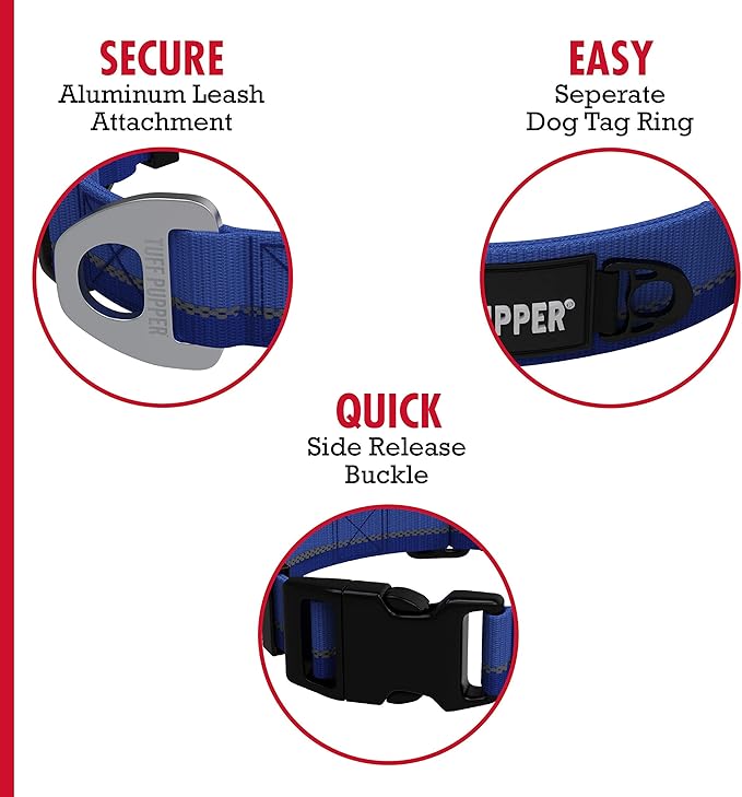 Tuff Pupper Heavy Duty Dog Collar | Reflective with Aluminum D-Ring Leash Clip | Separate Dog ID Tag Attachment | Easy Sizing for All Breeds