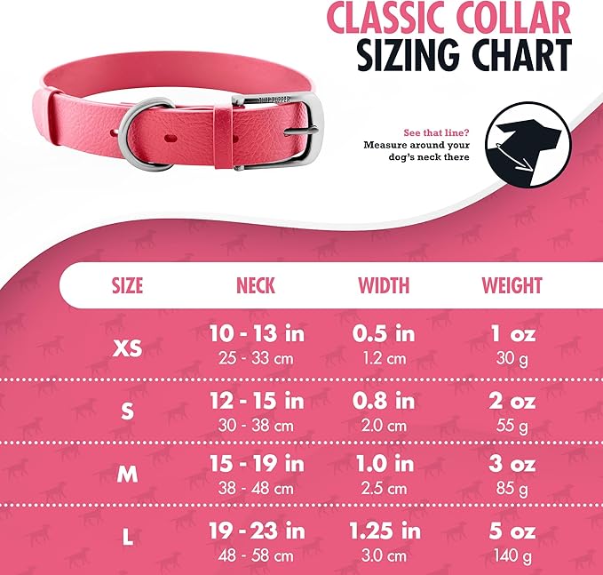 - SHOW COLLAR STYLISH & LIGHTWEIGHT - The perfect dog collar, with leather style grain and rich attractive colors, your tough pup will have a look of elite elegance. Constructed for all breeds, our classic collars intentionally maintains a lightweight, flexible, and comfortable design but tough enough to prevent tearing, scratching, and ripping from even the strongest, most energetic dogs.