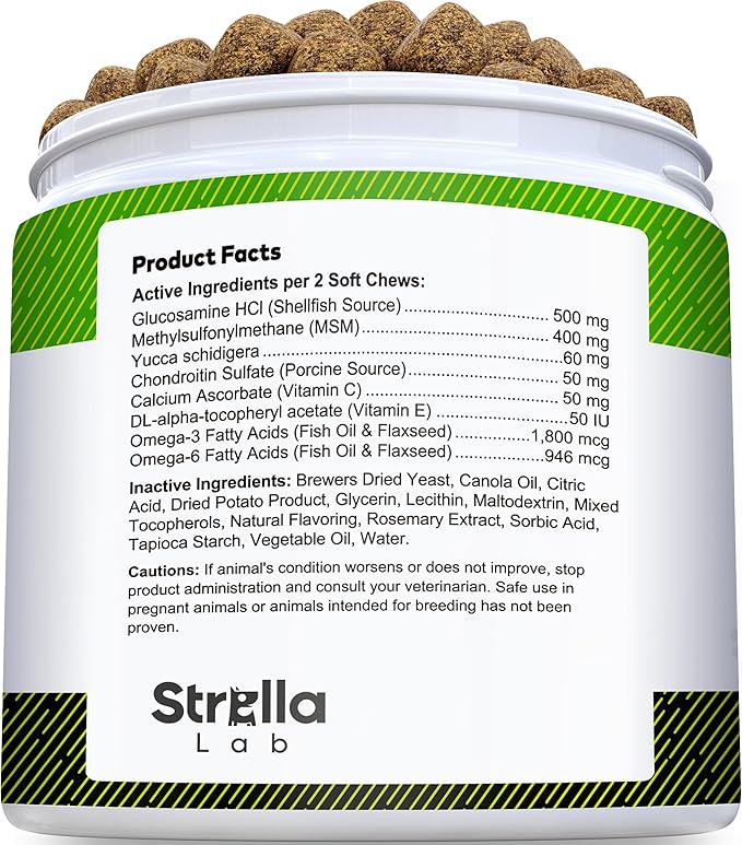 - Proven Excellence: For years, our dog glucosamine and chondroitin supplement for large dog has been advancing canine wellness. Leading as one of the best hips & joints supplements to help with joint pain relief and extend active years for old paws.