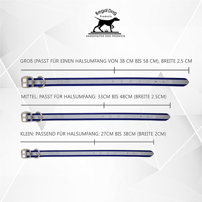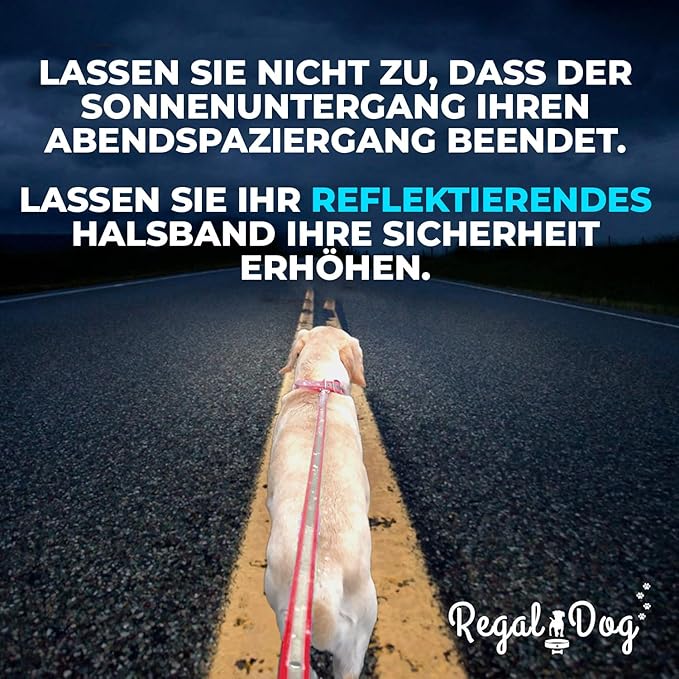 - SAFETY AFTER SUNDOWN – Walking your dog in the dark is dangerous. Fetch some safety for both you and your furry friend with the Reflective Dog Collar by Regal Dog Products! As cars pass, the highly reflective strip notifies drivers of your presence so they can safely steer clear.