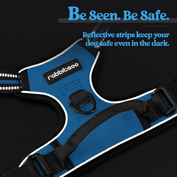 rabbitgoo Dog Harness No Pull with 2 Leash Clips, Adjustable Soft Padded, Reflective Oxford No Choke Pet Vest with Easy Control Handle for Medium Sized Dogs, Blue, M