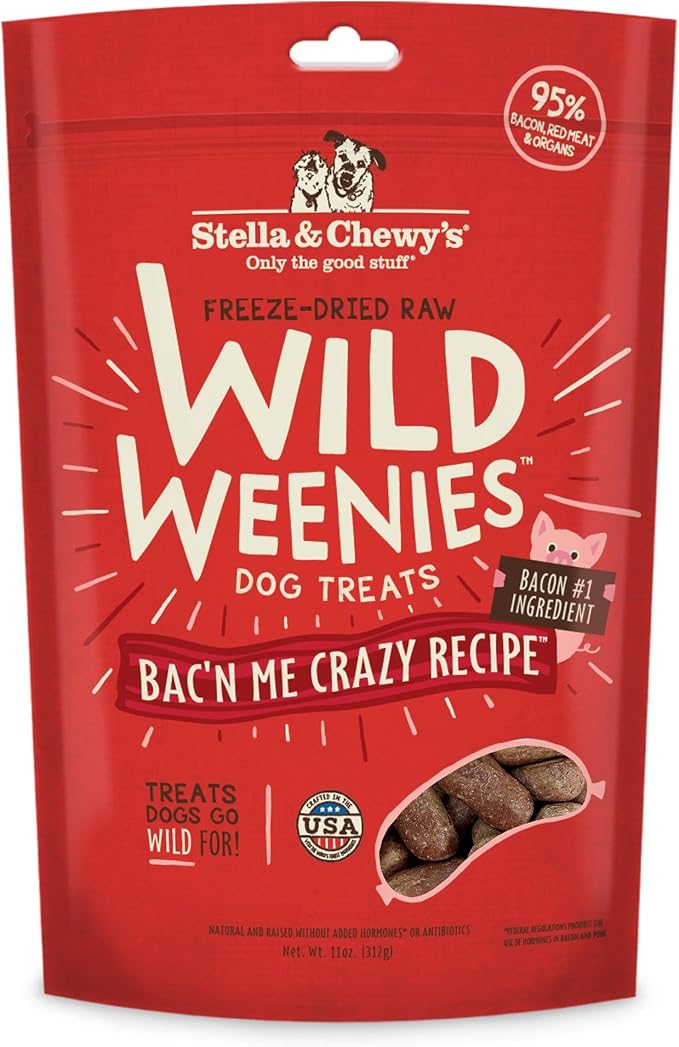 Stella & Chewy's Freeze-Dried Raw Wild Weenies Dog Treats - High-Protein Training Treats for Dogs & Puppies - All-Natural Bacon Recipe with 95% Meat & Organs - USA Made - 11 oz Bag