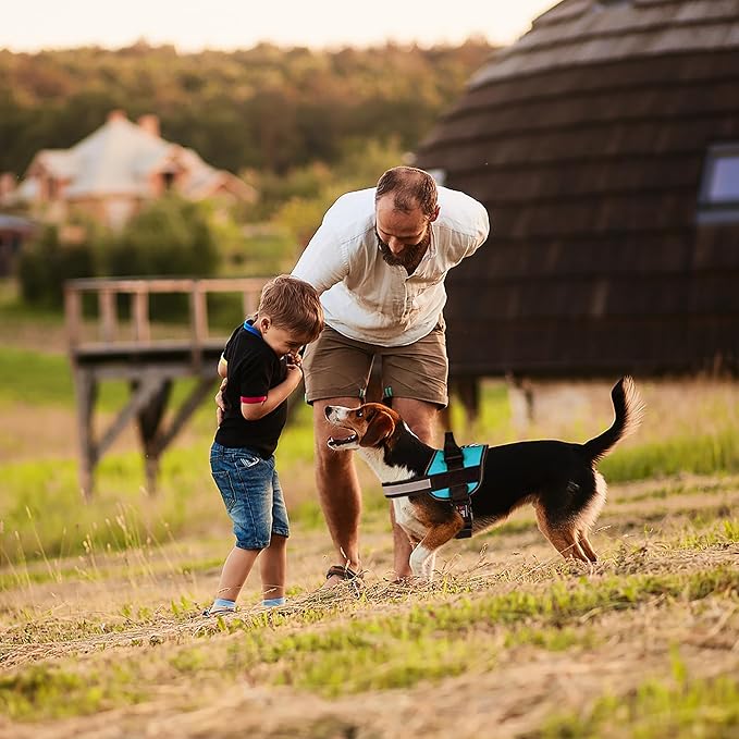 Dogline Dog Harness, Reflective No-Pull Adjustable Vest with Handle for Walking, Training, Breathable, No - Choke Harness for Small, Medium or Large Dogs Room for Patches Girth 15 to 18 in Turquoise