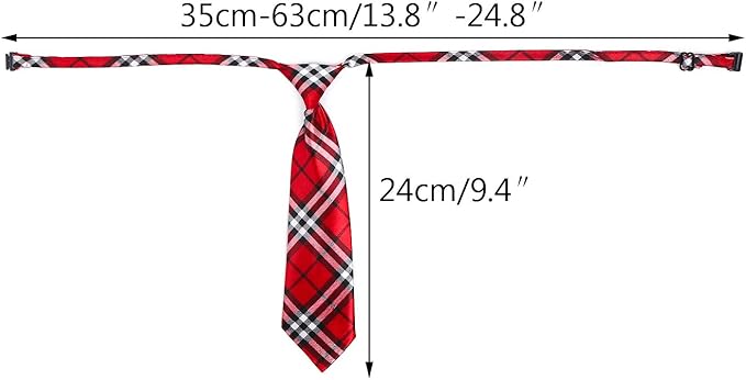 - ADJUSTABLE COLLAR LENGTH -- dog tie length is 9.4'', dog tie collar girth is 13.8"-24.8" adjustable, to fit pet neck girth approx 11.7"-23.4". And a 2-finger gap between dog neck and bowtie collar is recommended, for leaving no room for your dog to chew.
