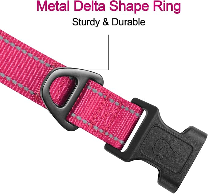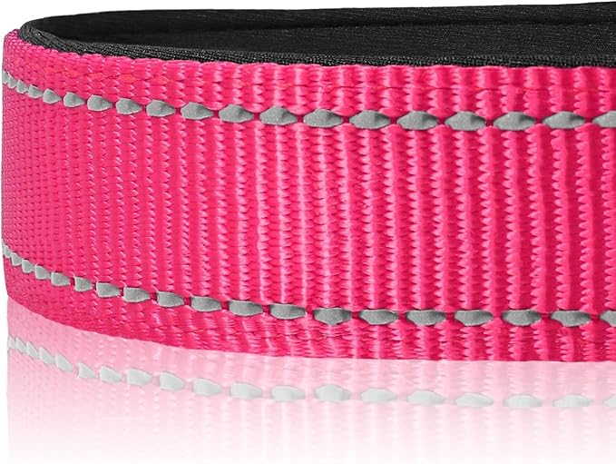 Joytale Reflective Dog Collar,Soft Neoprene Padded Breathable Nylon Pet Collar Adjustable for Large Dogs,Hotpink,L