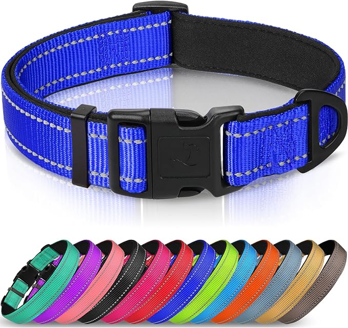 Joytale Reflective Dog Collar,Soft Neoprene Padded Breathable Nylon Pet Collar Adjustable for Puppy and Small Dogs,Navy Blue,XS