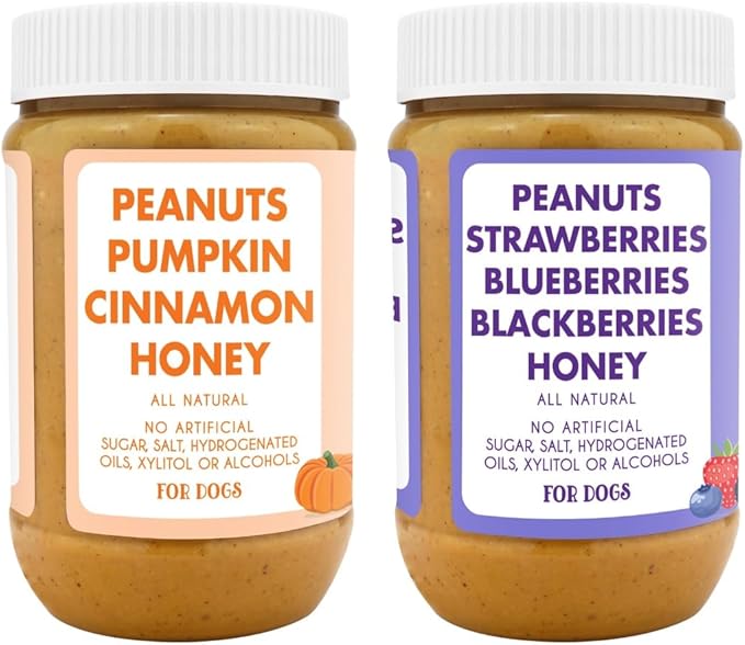 BUDDY BUDDER Bark Bistro Company, Superberry Snoot + Pumpkin Pup, Natural Dog Peanut Butter, Dog Treat, Made in USA (Set of 2, 17oz Jars)