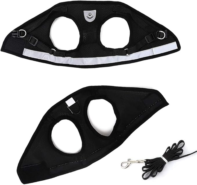 - Reflective & Safe - Reflective dog harness strap design, makes it visible in dark night and low light conditions, improves safety when dogs and cats walking at night. And the vest-type design evenly distributes the stress area of the chest and shoulders, reducing the dog's stress.