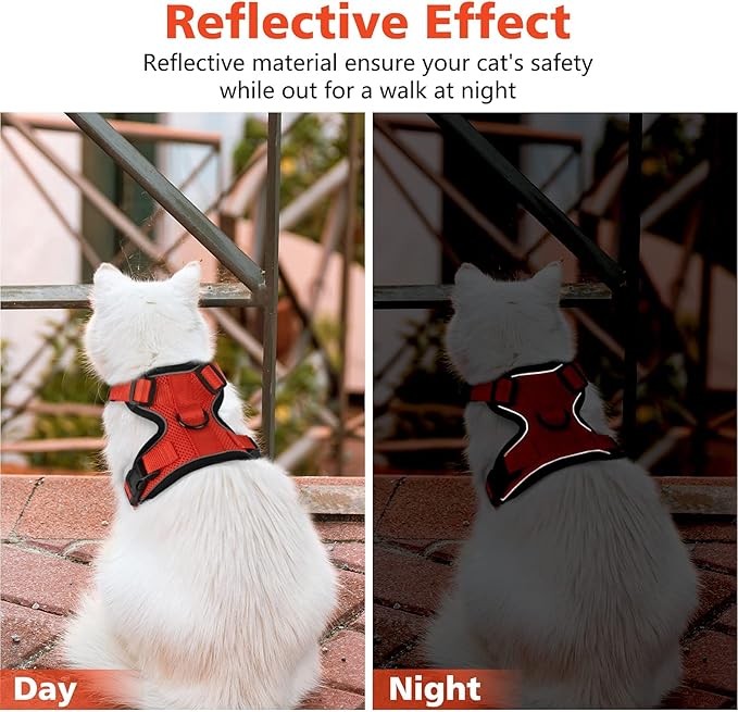 - Bright Reflective Strip & Sturdy D-rings - Reflective strip makes cat visible in low light conditions and improves safety when walking at night. This outdoor kitten harness features a sturdy D-ring on the back to attach to leash. It can evenly distribute the pulling pressure of leash across the chest and shoulders, which is less pulling pressure on your pet's fragile neck. Lightweight and no pressure allowing them to play more freely and lively