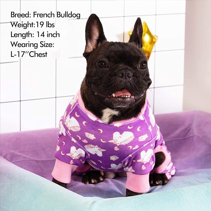 KYEESE Dog Pajamas Velvet Dog Pajamas Small Sized Dogs Soft Dogs Clothes Pjs with Unicorn Pattern Stretchy Pet Jammies Coat Comfy Pet Onesie Costume, X-Large