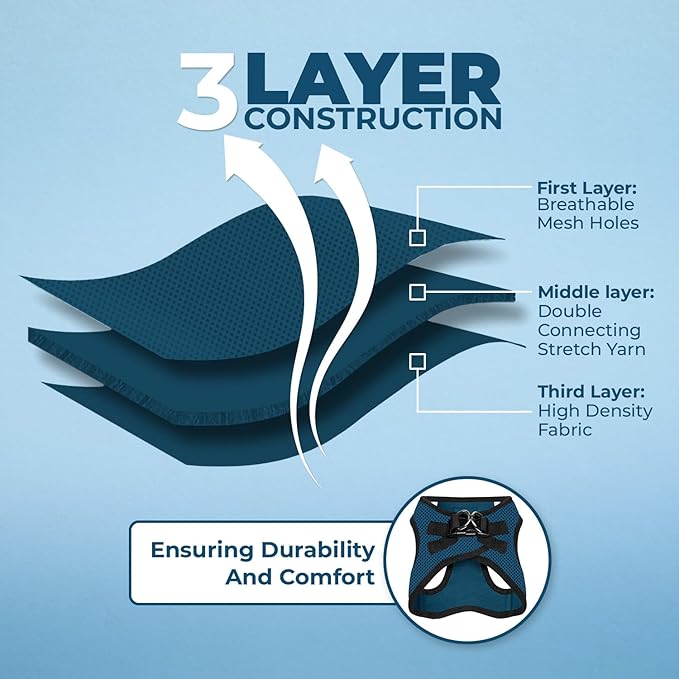 - Comfort All Year: Made with a soft and breathable air mesh, this lightweight, fast drying harness ensures maximum comfort for your pet during walks, regardless of the season