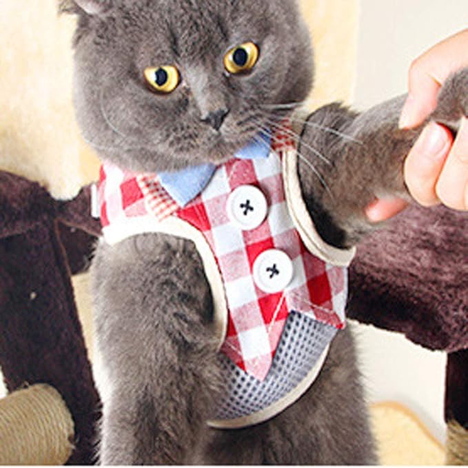 - 【Cat Harness Escape Proof】: Vest-style design can evenly distribute leash pressure across the chest and shoulders, when your pet tries to pull, makes your pet feel comfortable, metal ring on the back to attach to a leash, no lost again.
