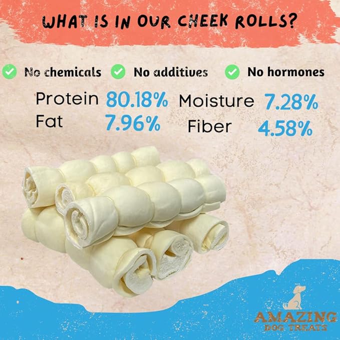 Amazing Dog Treats - Beef Cheek Rolls (4 Inch Regular - 8 Pcs) - Safe Rawhide Alternative Dog Chew - Great for Power Chewers - Long Lasting Dog Chew - Retriever Rolls for Dogs