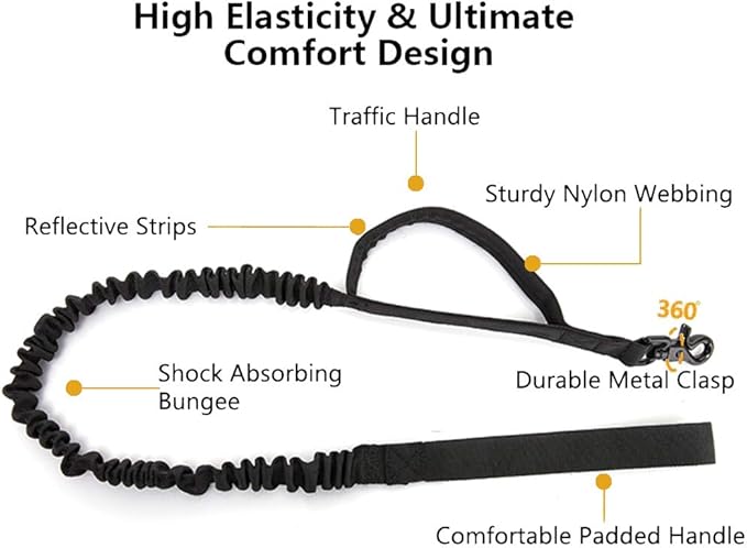 - 【Free High-Quality Bungee Dog Leash】The shock-absorbing bungee leash has a built-in elastic rubber band and can extend to 49 inches to give sufficient elasticity and control, reducing risk of injury. The two padded handles give your wrist a cushion against the pull. Heavy duty metal hook, made of sturdy zinc alloy, is for attaching the leashes. 【More Products in the Shop: We offer Custom patches, Pouches and more Patches】