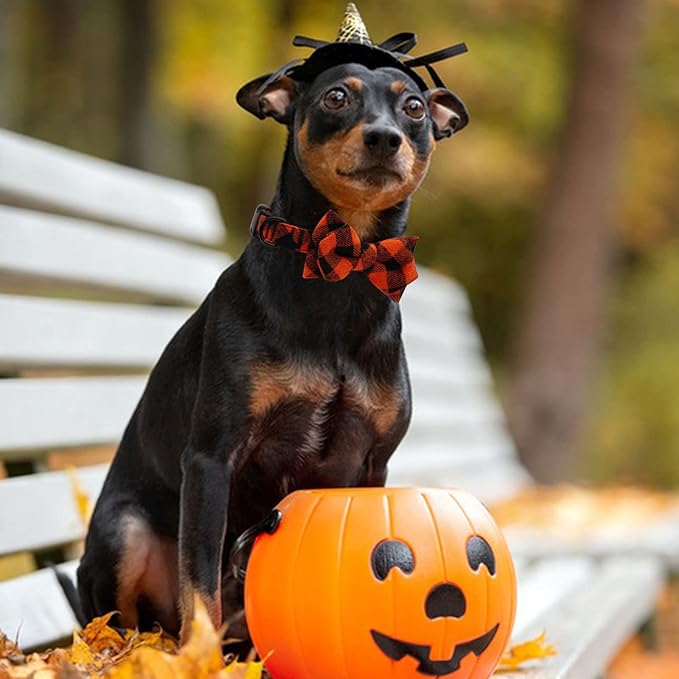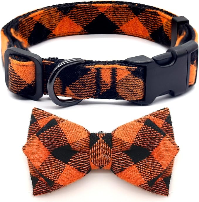 azuza Bowtie Dog Collar, Soft & Comfortable Fall Dog Collars with Bow, Plaid Adjustable Dog Collar for Medium Dogs