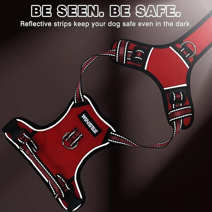 WINSEE Dog Harness No Pull, Pet Harnesses with Dog Collar, Adjustable Reflective Oxford Outdoor Vest, Front/Back Leash Clips for Small, Medium, Large, Extra Large Dogs, Easy Control Handle for Walking