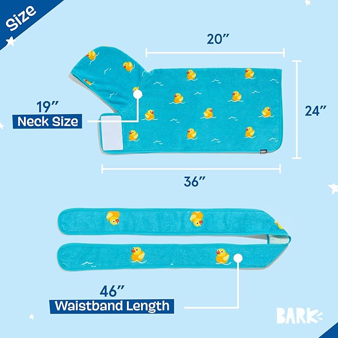 Barkbox Dog Bathrobe Fast Drying with Hook and Loop Closure & Wrap Tie Snuggle, Cute Dogs Clothes, Easy to Clean, Machine Washable, Dog Coats and Tumble Dry Low - Rubber Duck, Medium