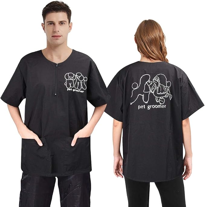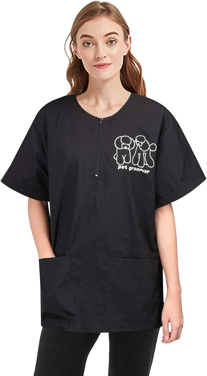 - 【Practical Pockets】-- Double-sided pockets design, convenient to carry small grooming kit when it is necessarily. It is a professional work clothes for pet workers, featuring round neck with a zipper on neck which can slip on and off easily