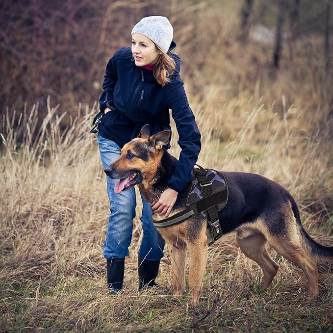 Dogline Dog Harness, Reflective No-Pull Adjustable Vest with Handle for Walking, Training, Breathable, No - Choke Harness for Small, Medium or Large Dogs Room for Patches Girraffe Grey L 27"-34"