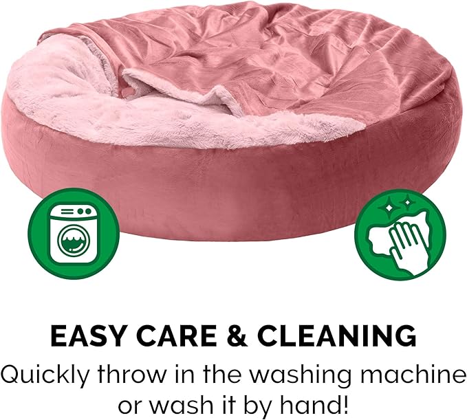- PRODUCT DETAILS: Hooded Donut Bed, Rose Pink; Small - 24" Round