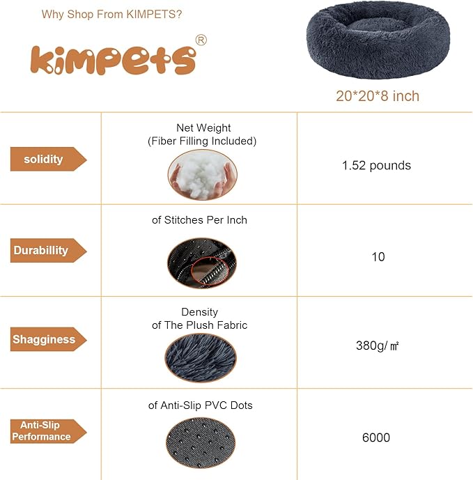 - [ KIMPETS BRAND PROMISE] - Welcome to contact us if you have any questions or concerns; We will guarantee a no-hassle refund or replacement (NO RETURN REQUIRED if it is a defective item), and resolve it for you in 24 hours! Our dog calming bed are produced by strict high-quality standards to offer a great experience for you and your pets.