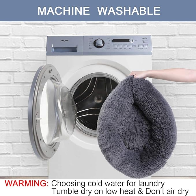 - [ MUTIPLE SIZE ] - Pick the perfect size for your pup! Small size of donut dog bed is ( 20'' x 20" x 8'' ) and up to 21lbs, like Lhasa apso, Pomeranian, Chihuahua, Maltese dogs. Available in Small ( 20'' x 20" x 8'' ), Medium ( 28'' x 28'' x 8”), and Large ( 36'' x 36'' x 8'' ). WARMMING: Our fluffy dog bed not suitable for puppy with excessive teething or chewing behavior!