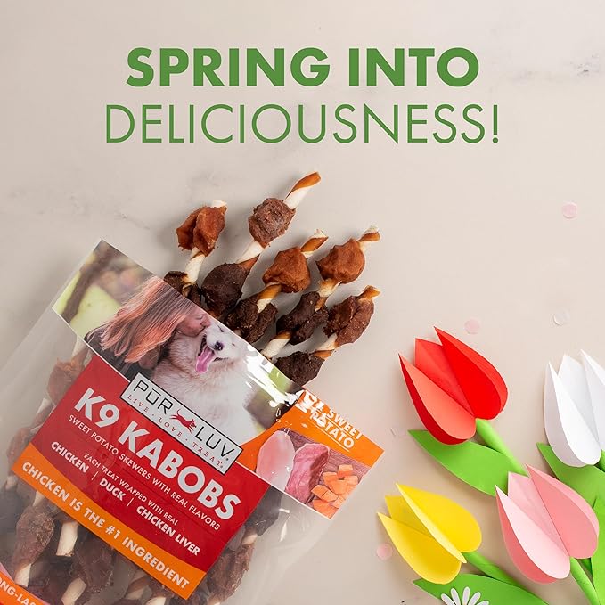 - Real Sweet Potato: Pur Luv Kabobs are made with a sweet potato skewer for an easily digestible chew.
