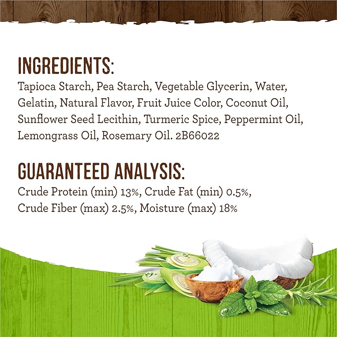 - Dental dog chews with coconut and botanical oils are easily digestible and clean teeth and freshen breath with only 13 ingredients