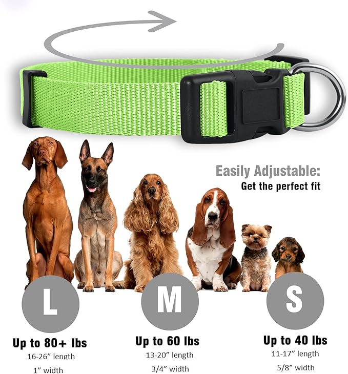 Native Pup Basic Nylon Dog Collar, Adjustable for Small, Medium, Large pet and Puppies Accessories, Cute Colors for Male, Female, boy, Girl, Puppy (Large, Neon)