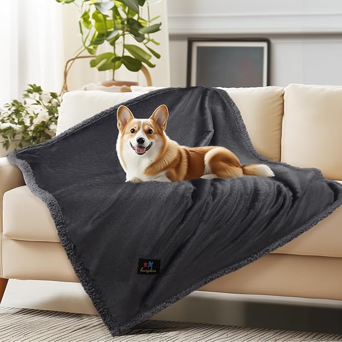 Waterproof Pet Blanket, Liquid Pee Proof Dog Blanket for Sofa Bed Couch, Reversible Sherpa Fleece Furniture Protector Cover for Small Medium Large Dogs Cats, Dark Gray Large(65" x 57")
