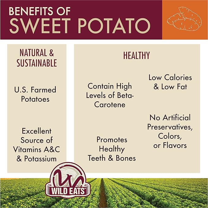 - SUPERIOR QUALITY: Our Wild Eats Sweet Potato and Chicken Treats contain No additives, preservatives, artificial colors or flavors. All ingredients are sourced from and made in the USA.