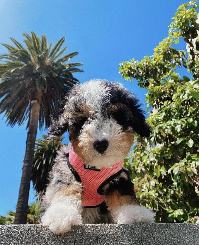 - ✔️No Pull & No Choke Halter Harness: Soft mesh, gentle, breathable double layered mesh fabric made from non-toxic ROSH tested mesh fabric with durability built to last. Strong full body collar for daily walking, running, and hiking. Soft and extremely breathable lightweight airflow for an enjoyable walking experience. Anti-rub technology with Custom Stitched Designed to protect your pet from chaffing due to strap rubbing against dog's legs and chest for ultimate comfort and control innovation.
