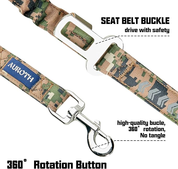 AUROTH Dog Leash Large Dogs, Heavy Duty Dog Leash Bungee, No Pull Dog Leash for Shock Absorption, Woodland Camo Dog Training Leashes for Medium Large Breed Dogs 6FT, 2 Padded Handles