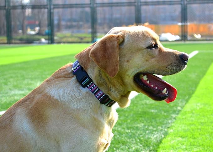 Dog Collar with Bohemia Floral Tribal Geometric Patterns - Soft Ethnic Style Collar Adjustable for Small Medium Large Dogs(Bohemian Purple,S)